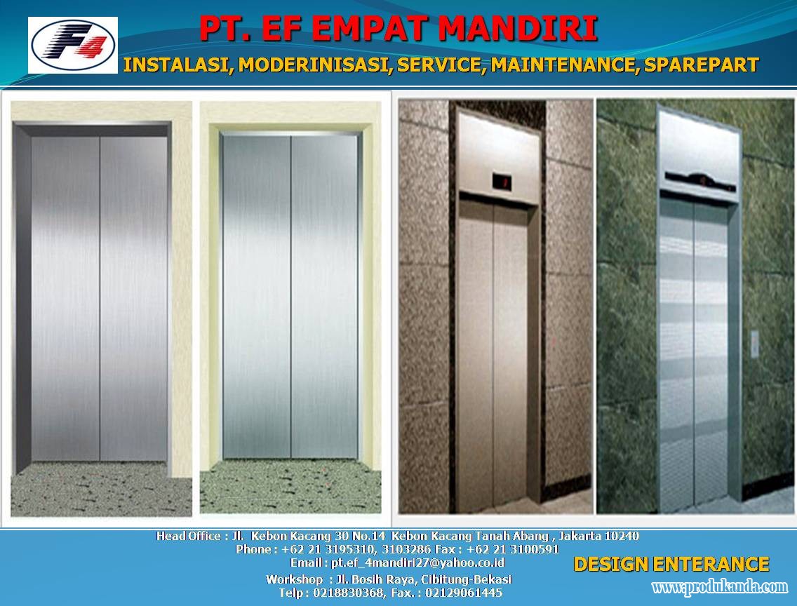 Dapatkan Spesifikasi Harga LIFT ENTERANCE DESIGN Produk Terbaik dari PT. EF EMPAT MANDIRI perusahaan swasta nasional yang bergerak dibidang Jasa perdagangan dan supplier, khususnya pengadaan Lift dan Escallator Building, Service and Sparepart dan Perlengkapan Lainnya