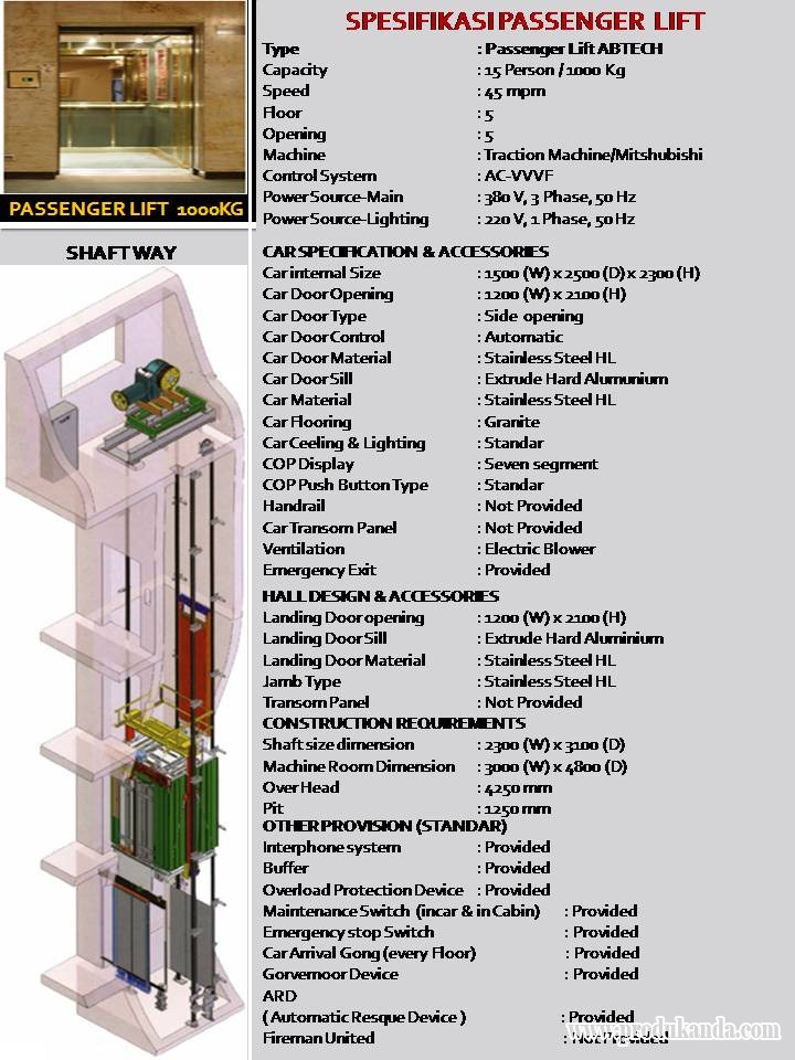 Dapatkan Spesifikasi Harga LIFT SPECIFICATION KAP.1000KG Produk Terbaik dari PT. EF EMPAT MANDIRI perusahaan swasta nasional yang bergerak dibidang Jasa perdagangan dan supplier, khususnya pengadaan Lift dan Escallator Building, Service and Sparepart dan Perlengkapan Lainnya